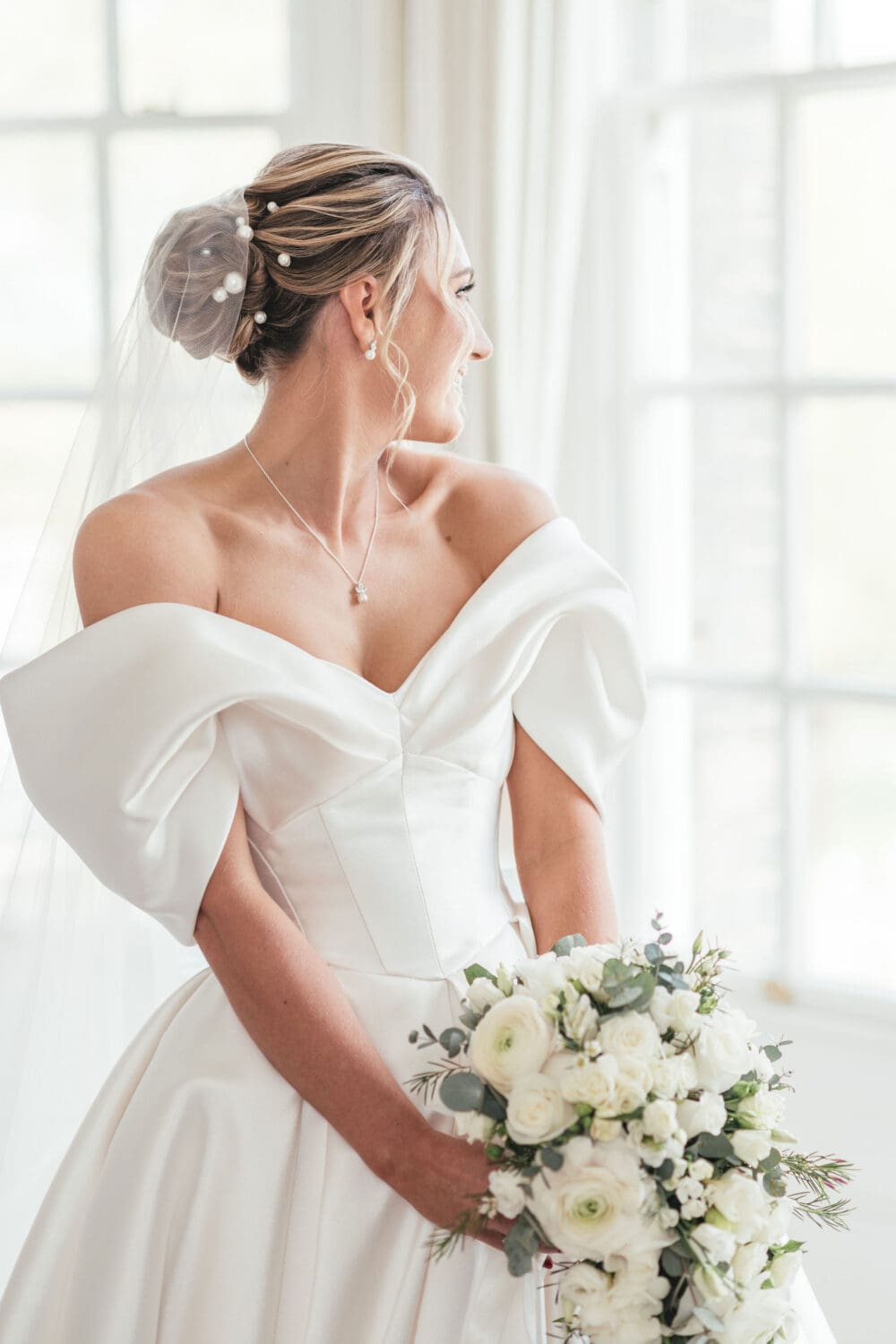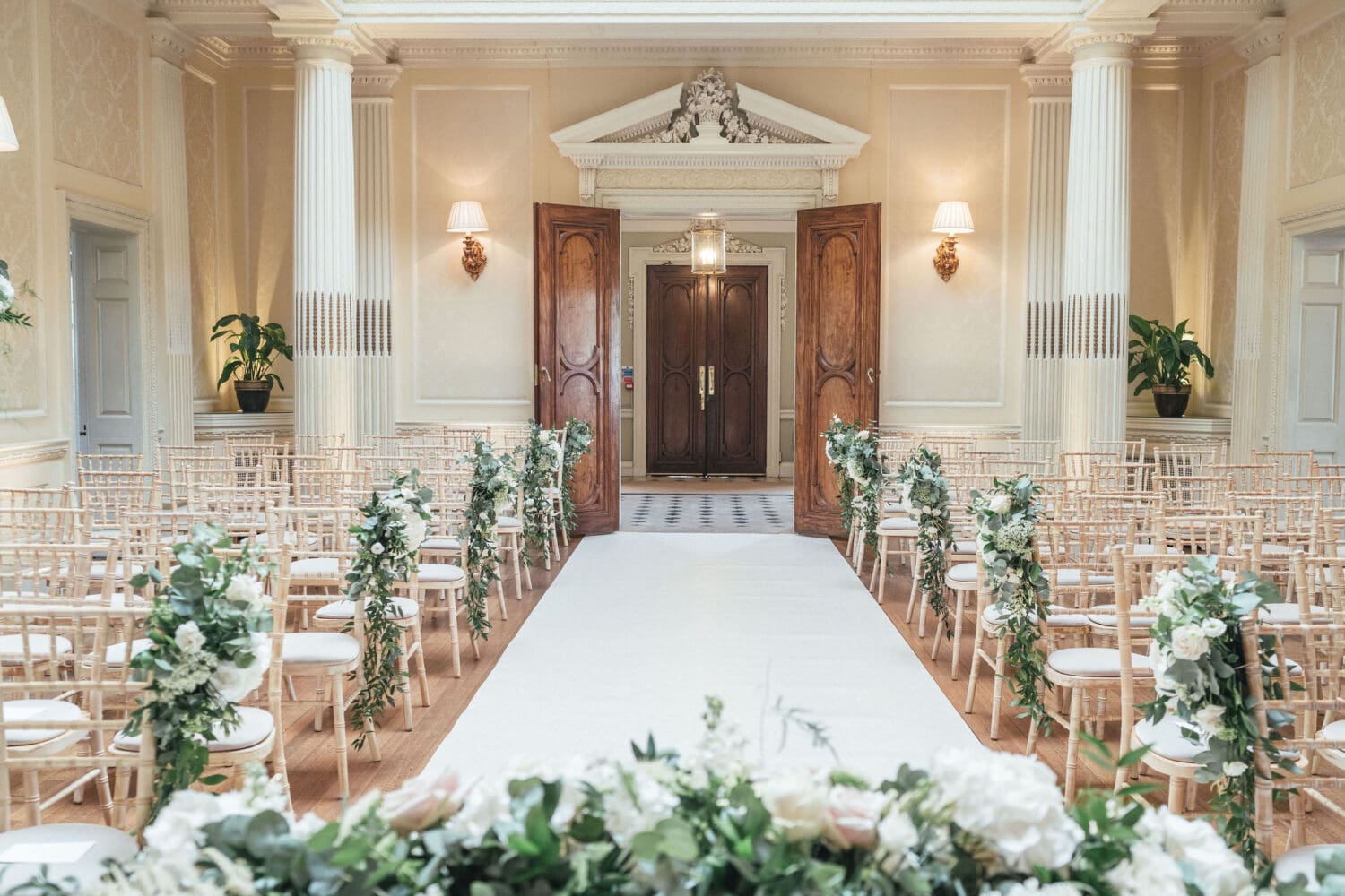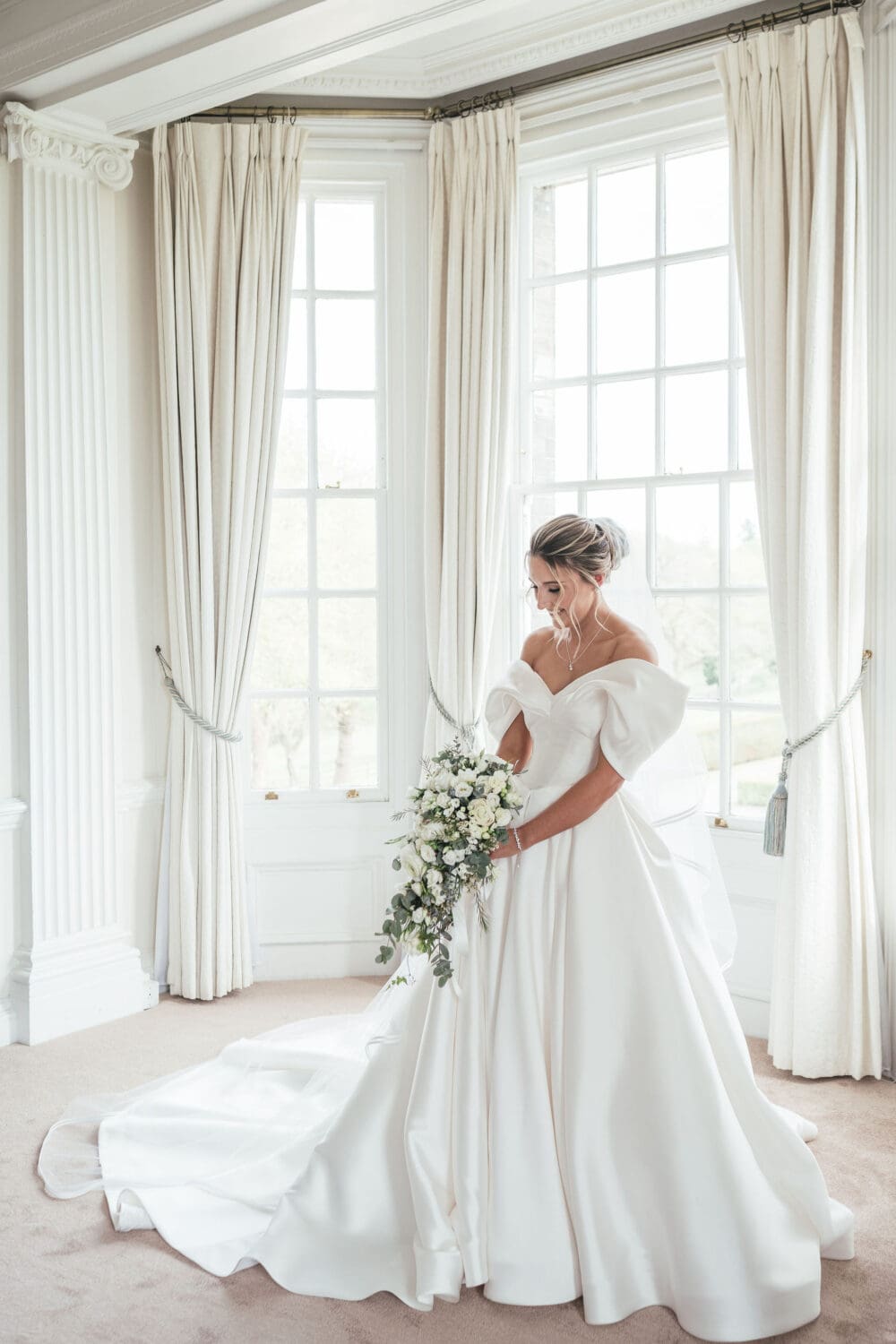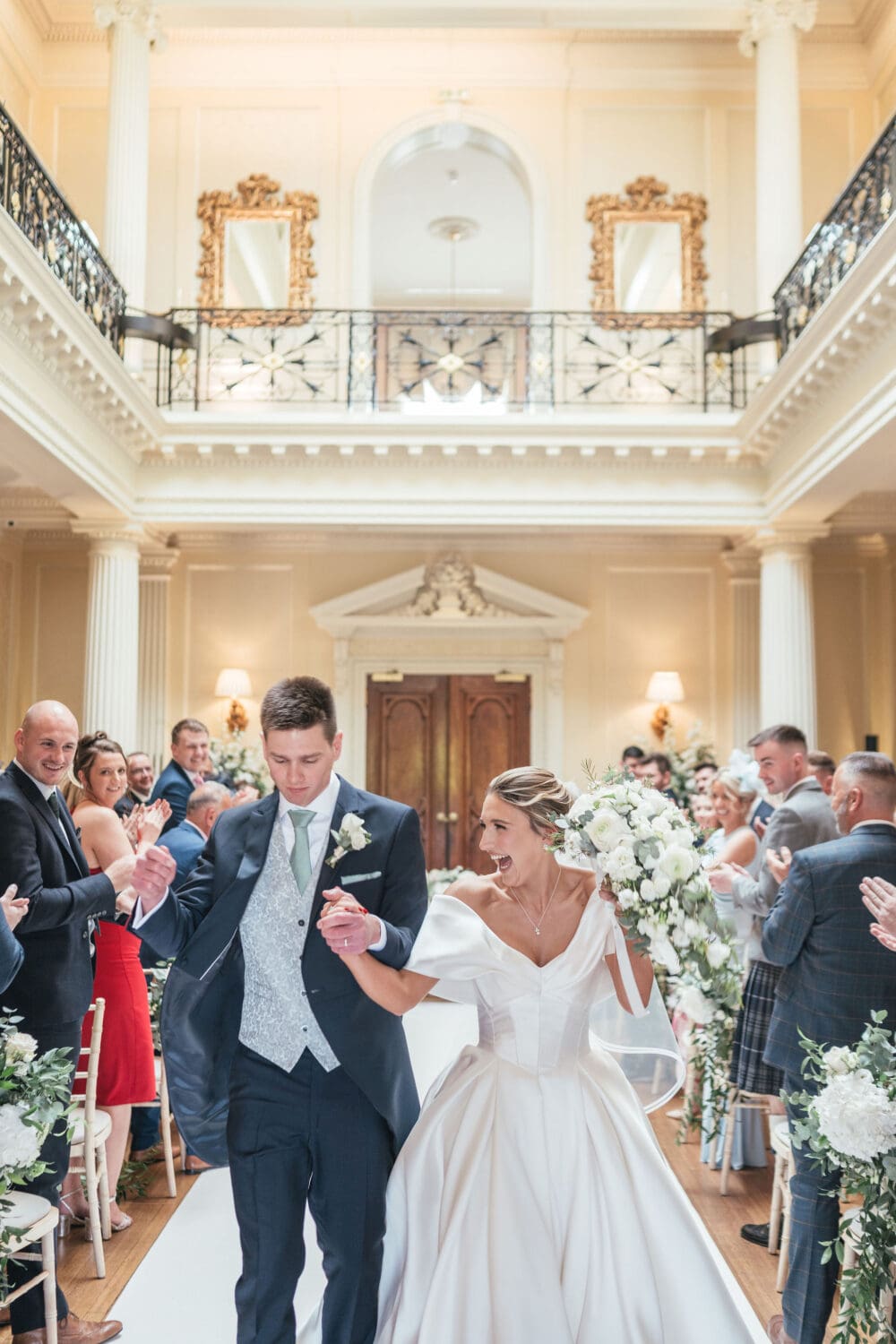 Emily and Henry’s vision was classic with subtle playful touches: whites, creams, greenery, hints of blush pink, and light sage green bridesmaid dresses. The overall look was refined and effortless, ideal for editorial-style photography that will age beautifully over time.